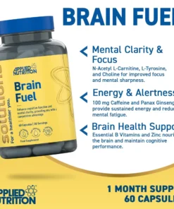 Unlock your full potential with Applied Nutrition Brain Fuel, a powerful nootropic supplement designed to enhance focus, energy, and cognitive performance. Packed with premium ingredients like N-Acetyl L-Carnitine, L-Tyrosine, and VitaCholine™, this advanced formula supports mental clarity and helps you stay sharp and energised throughout the day.