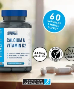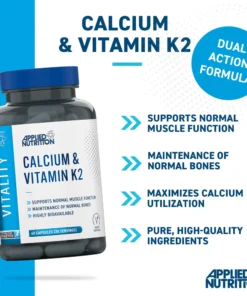 Support your body where it matters most with Applied Nutrition Calcium & Vitamin K2, a well-balanced daily supplement designed to help maintain strong bones and healthy muscle function. With a thoughtfully formulated blend of 440 mg of calcium and 75 µg of vitamin K2 (as MK-7), it provides essential support for energy metabolism, bone strength and overall wellbeing.