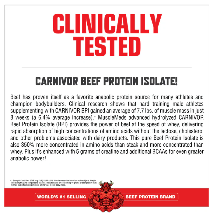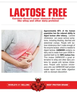 FACT: Nearly 70% of the global population is intolerant to lactose. Milk proteins such as whey and casein contain lactose and are poorly digested by most people, which can cause stomach distress and boating. Carnivor Beef Protein Isolate will resolve any gastric issues you are experiencing from whey and give you the quality protein you need to build muscle.