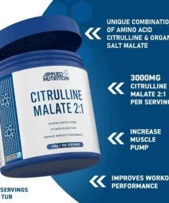 CITRULLINE MALATE is a nitric oxide (NO) enhancer. This relaxes smooth muscle and increases the rate and volume of oxygen and nutrient-rich blood towards the working muscle tissue mass. Citrulline Malate is an ergogenic aid, fuelling both resistance and high-intensity exercise performance, and the recovery of muscle performance during intense training.