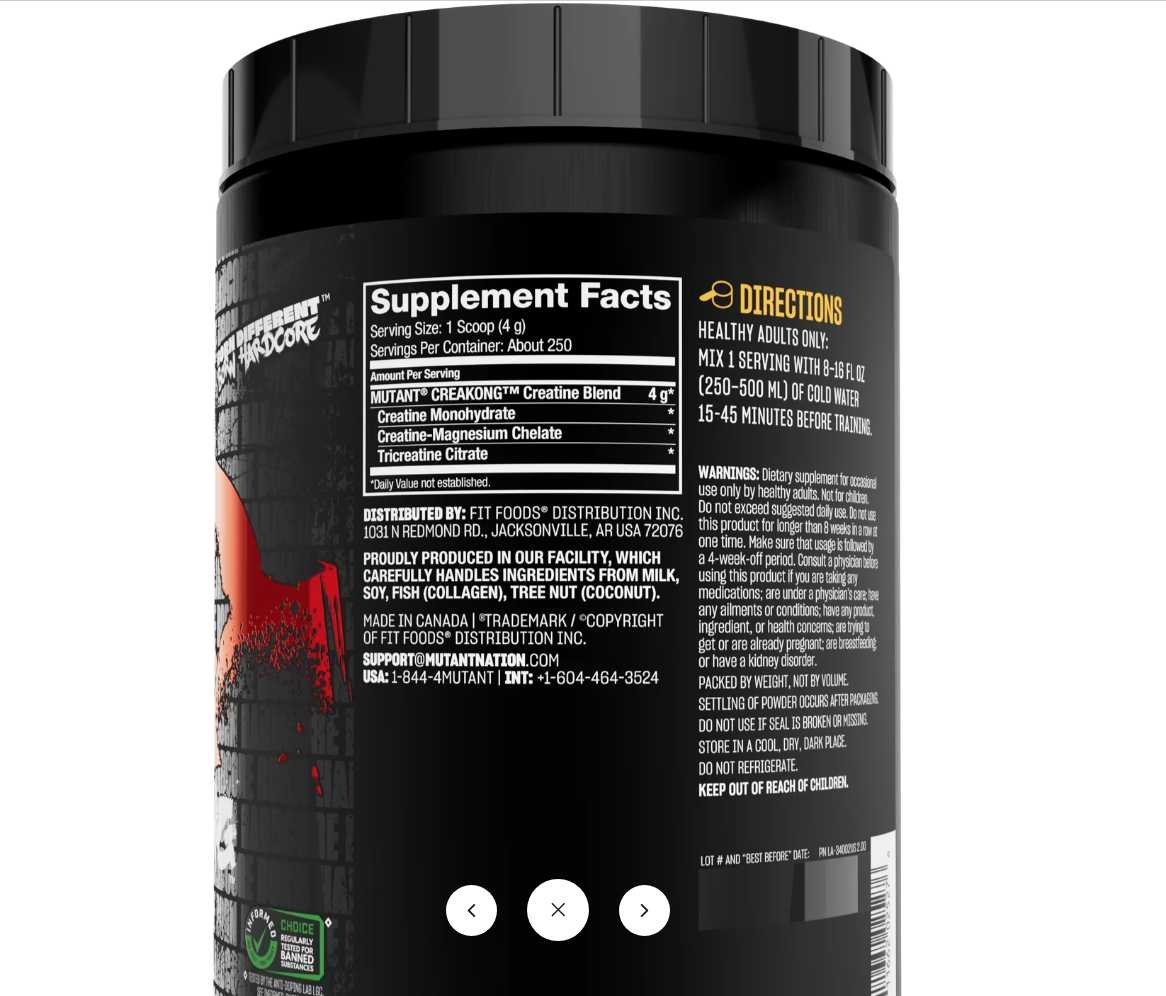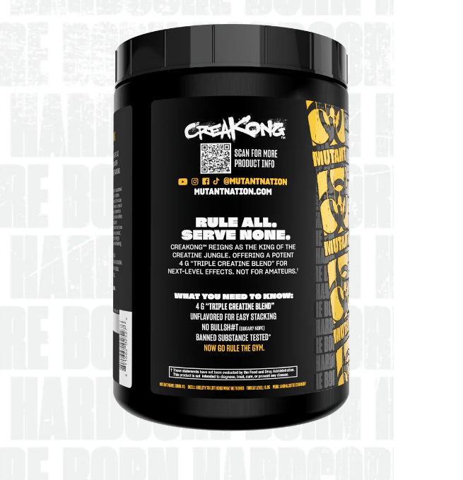 Creatine supplementation has been extensively scientifically studied to increase muscle strength, size, and athletic performance. MUTANT® CREAKONG™ takes creatine supplementation to the next level with its pure, 3-creatine blend engineered for maximum bioavailability.
