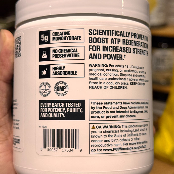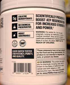 - 5g of pure, micronized creatine to support daily strength and power output.