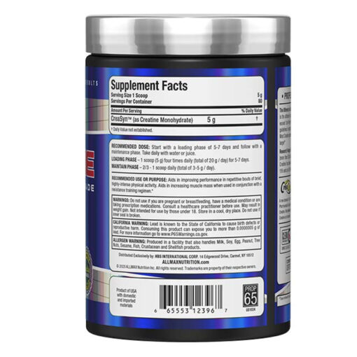 Allmax Pharmaceutical Grade Creatine is the ultimate in purity and safety; rigorously held to strict standards that meet or exceed 3rd-Party independent testing for WADA Banned Substances and cGMP guidelines. In addition, our Creatine is micronized creatine monohydrate which is an ultra-fine, free-flowing powder and easier to absorb. Most Creatine monohydrate powders on the market today have particles that are as much as 250% larger!
