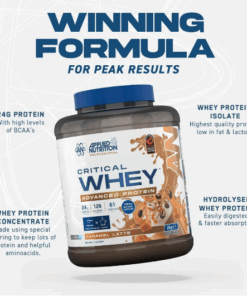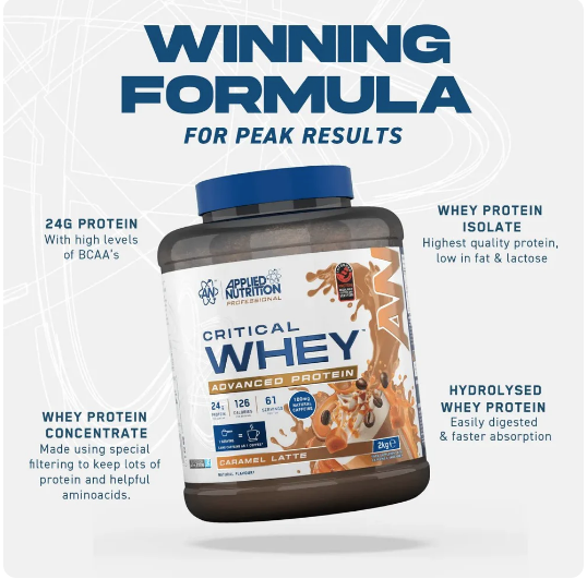 Critical Whey™ Advanced Protein has been scientifically reformulated to deliver premium-quality nutrition with improved flavour, mixability, and a higher protein content. Each serving now contains 24g of protein and just 120 calories, ideal for athletes, gym-goers, and active individuals looking to build and maintain lean muscle.