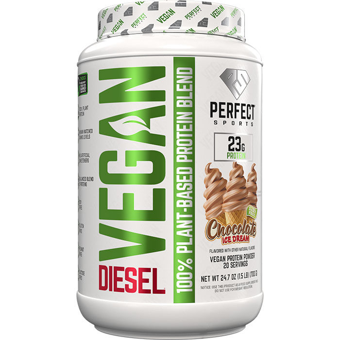PERFECT Sports® research and development department formulated, sampled and tested every option, along with the rest of the PERFECT Sports® team, to ensure that each and every flavor of DIESEL® Vegan was smooth and enjoyable without an ounce of chalky mouth feel. If you were ever turned-off of vegan protein because of the way it felt going down, you have found your match in DIESEL® Vegan! Guaranteed!