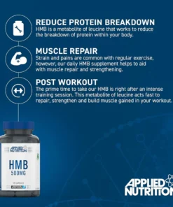 HMB is an active metabolite of the Branched Chain Amino Acid, Leucine. HMB is a popular addition to all Applied Nutrition’s products, typically taken post-training.