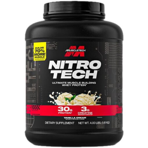 Nitro-Tech® redefines what whey protein can achieve with a scientifically engineered 30g whey + 3g creatine formula. Once protected by a 20-year patent, it’s clinically proven to build 70% more muscle than regular whey. In just 6 weeks, users gained 8.8 lbs. of lean muscle and added 34 lbs. to their bench press. More muscle. More strength. Better performance.