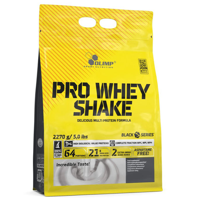 Olimp Pro Whey Shake . A powdered food supplement with sugars and sweeteners. A composition of all key peptide fractions of whey protein, consisting of three forms: concentrate, isolate, and hydrolysate. Proteins contribute to the growth and maintenance of muscle mass. This product is intended for individuals with increased protein requirements who aim to build muscle mass – especially active individuals and competitive athletes.